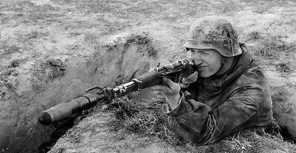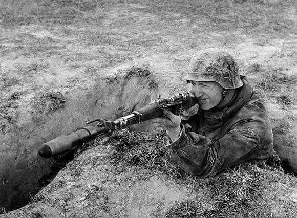 Wehrmachtssoldat mit Granatwerfer montiert auf einem Karabiner 98K