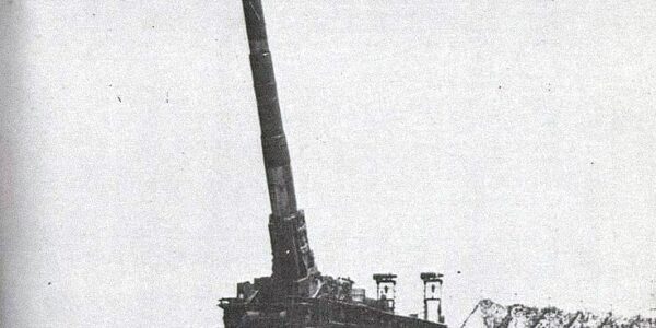 Eisenbahngeschütz Schwerer Gustav auf einem seltenen Foto, wahrscheinlich irgendwann im Jahr 1942 in Sewastopol, obwohl diese Information nicht zu 100 % bestätigt werden kann. Der „Schwere Gustav“ war das schwerste mobile Artilleriegeschütz, das je gebaut wurde, und die größte gezogene…