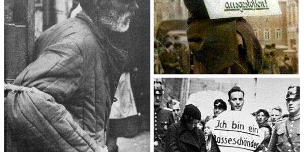 Eine deutsche Frau wird wegen einer Affäre mit einem polnischen Mann öffentlich gedemütigt, 1942 Im Jahr 1942 befand sich Europa mitten im Zweiten Weltkrieg. Nicht nur an der Front, sondern auch im zivilen Alltag herrschten Angst, Kontrolle und Misstrauen. In…