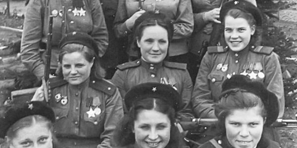 775 bestätigte Abschüsse auf einem Bild, 1945 Scharfschützinnen der 3. Stoßarmee der 1. Weißrussischen Front. Die Stoßarmeen wurden speziell dafür aufgestellt, bedeutende feindliche Kräfte anzugreifen und zu vernichten. Sie verfügten über mehr Panzer- und Artilleriewaffen als andere kombinierte Armeen. Bei…